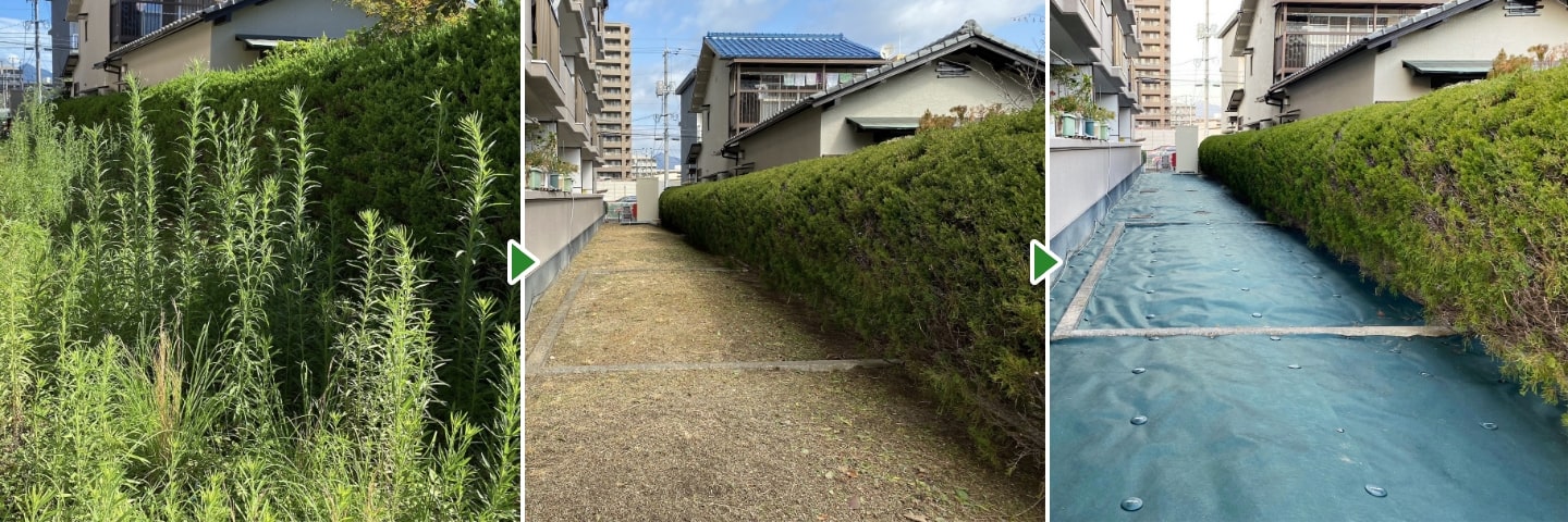 また、どの方法も定期的に行わなければなりません。面倒な草刈りをしたくない方は「防草シート」を使うことをお勧めします。